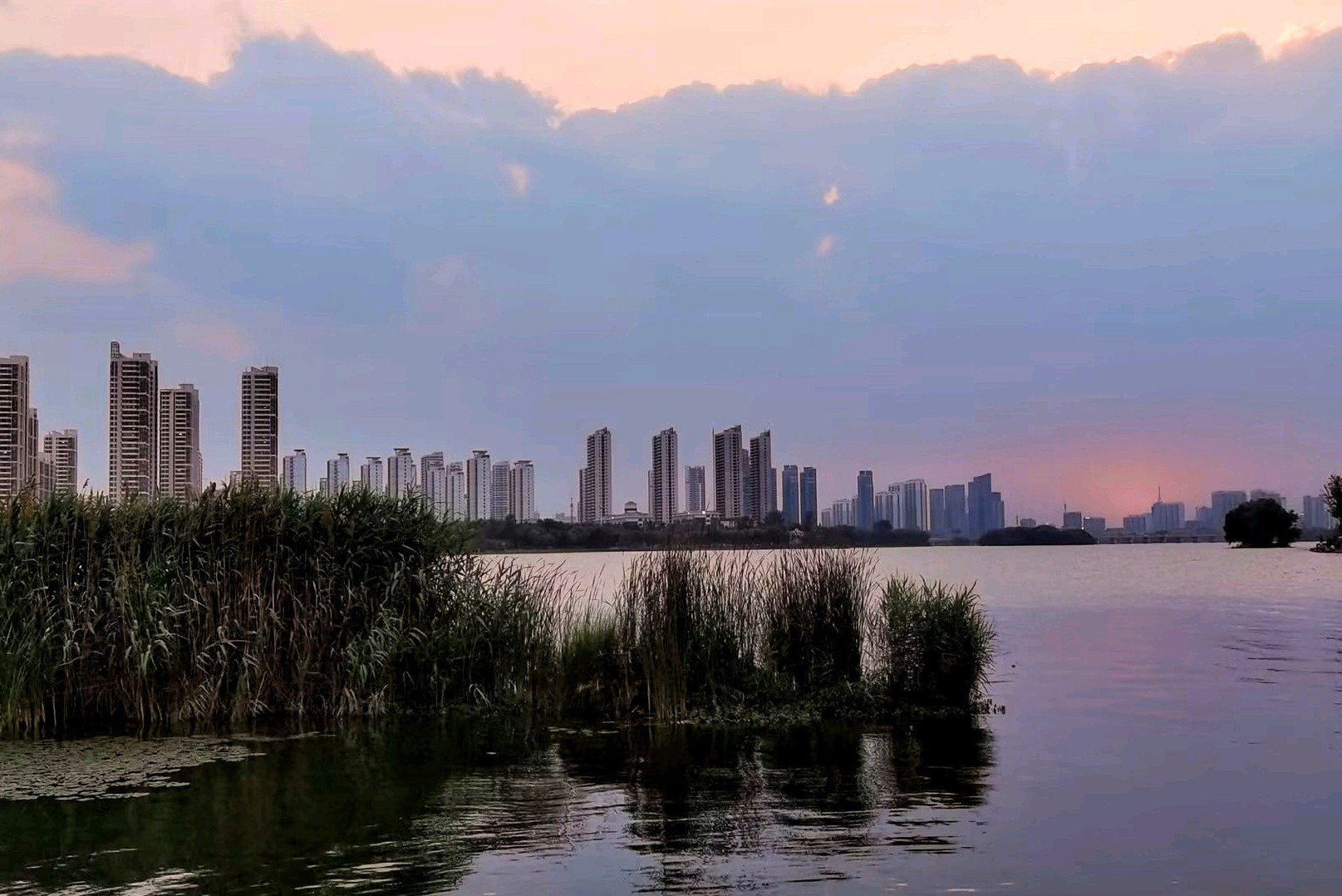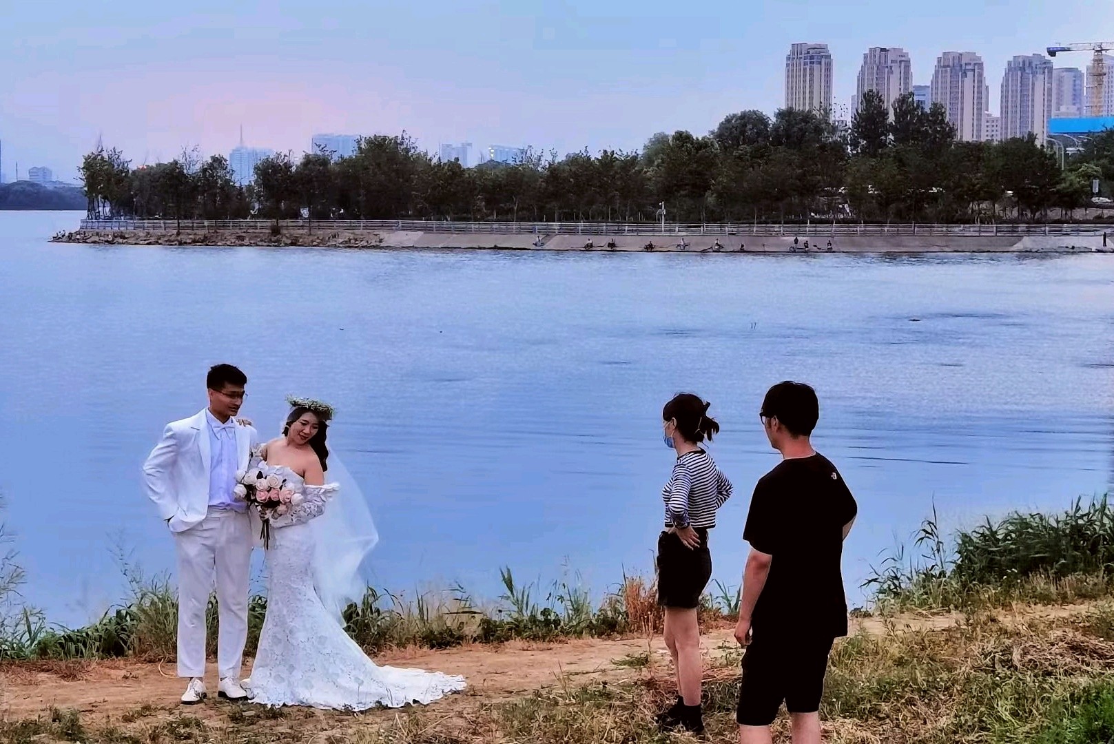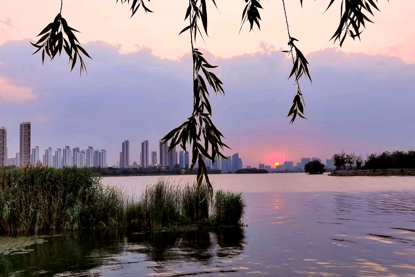 落日余晖下的沂河,云霞满天,绿意盎然,成为众多年轻人婚纱照打卡之地。漫步河边,感受大自然的魅力与现代文明的融合。