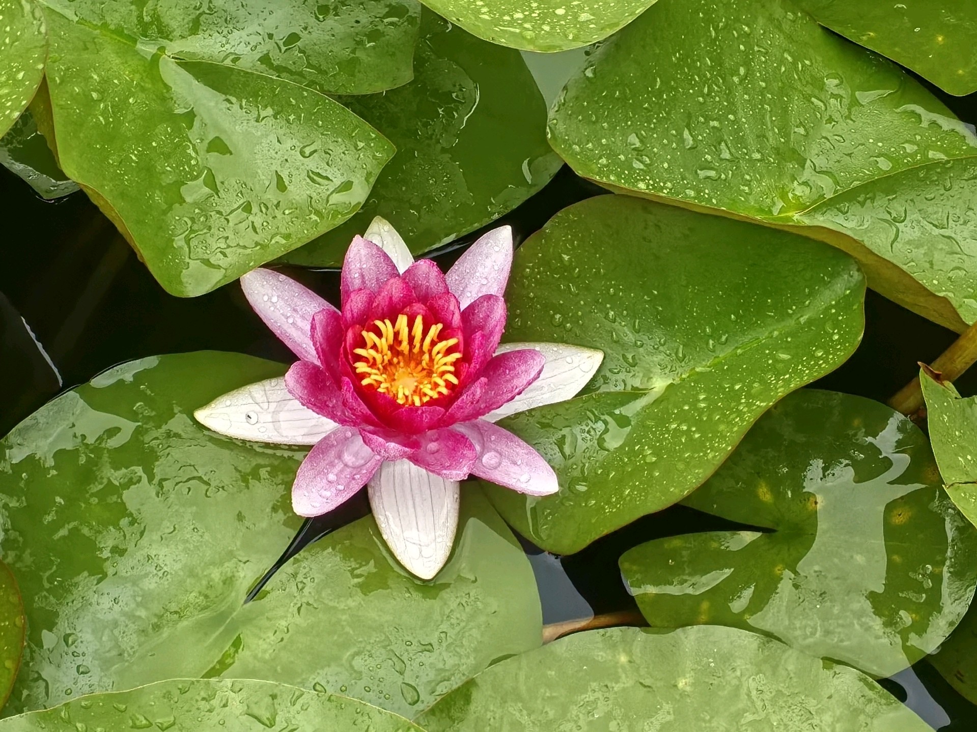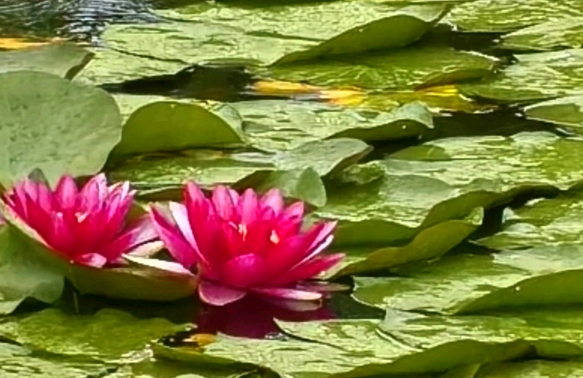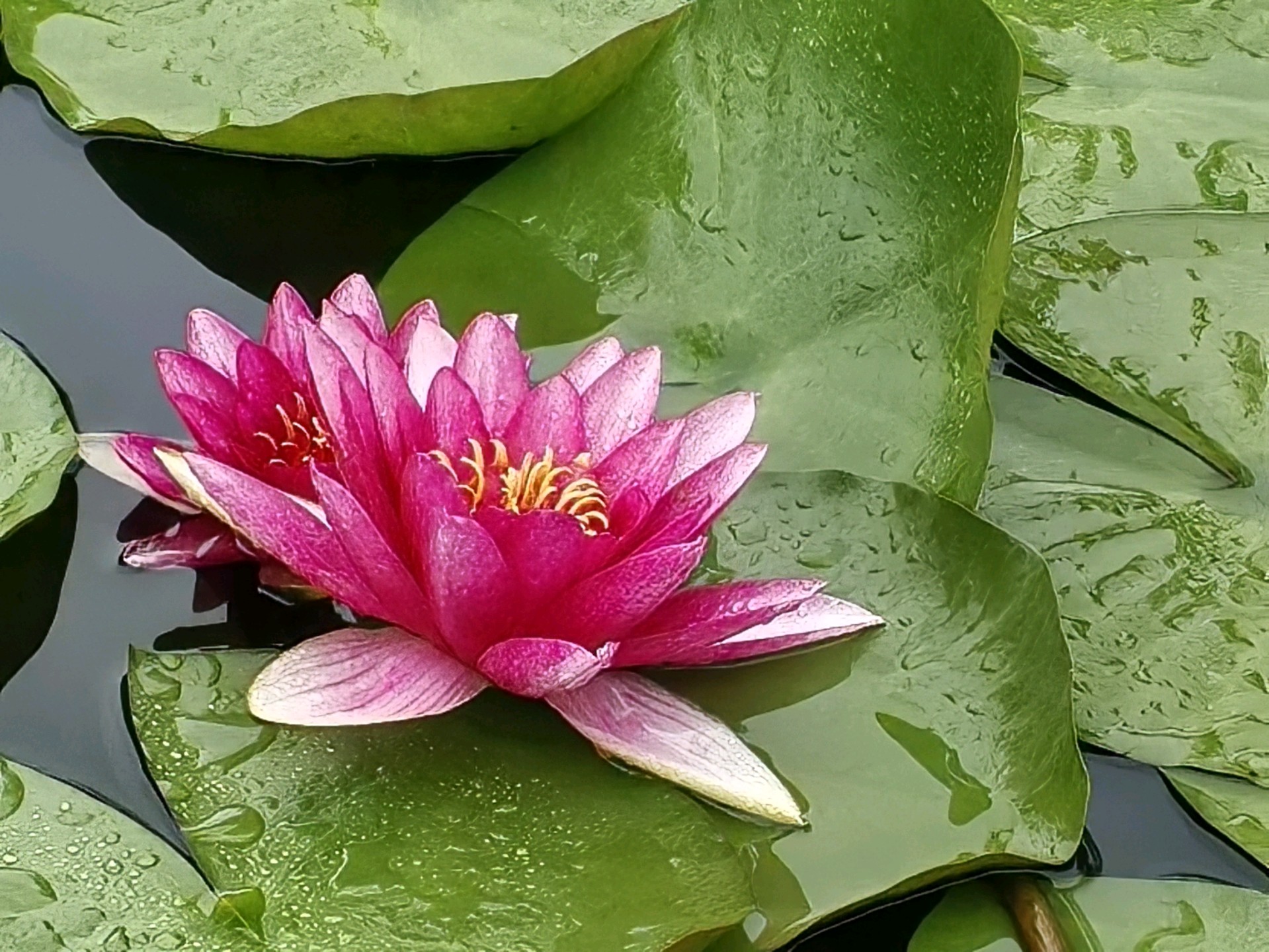 当下睡莲盛开,呈现出一幅美不胜收的夏日画卷。睡莲的花朵小巧玲珑,从密密层层的莲叶中争相钻出水面。它们有的完全舒展花瓣,露出嫩黄的花蕊,在阳光中散发柔和光泽;有的则半开半合,宛如羞涩的少女,犹抱琵琶半遮面。睡莲的颜色丰富多彩,白的淡雅高洁,如不食人间烟火的仙子;粉的娇嫩柔美,似少女娇羞的面庞;黄的明艳动人,像璀璨的阳光洒在水面;红的热烈奔放,仿佛燃烧的火焰。微风拂过,湖面泛起粼粼波光,睡莲也随之轻轻摇曳,仿佛在与河水低语、与清风共舞。偶尔有蜻蜓点水般落在睡莲的花瓣上,为画面增添了一份灵动之美。