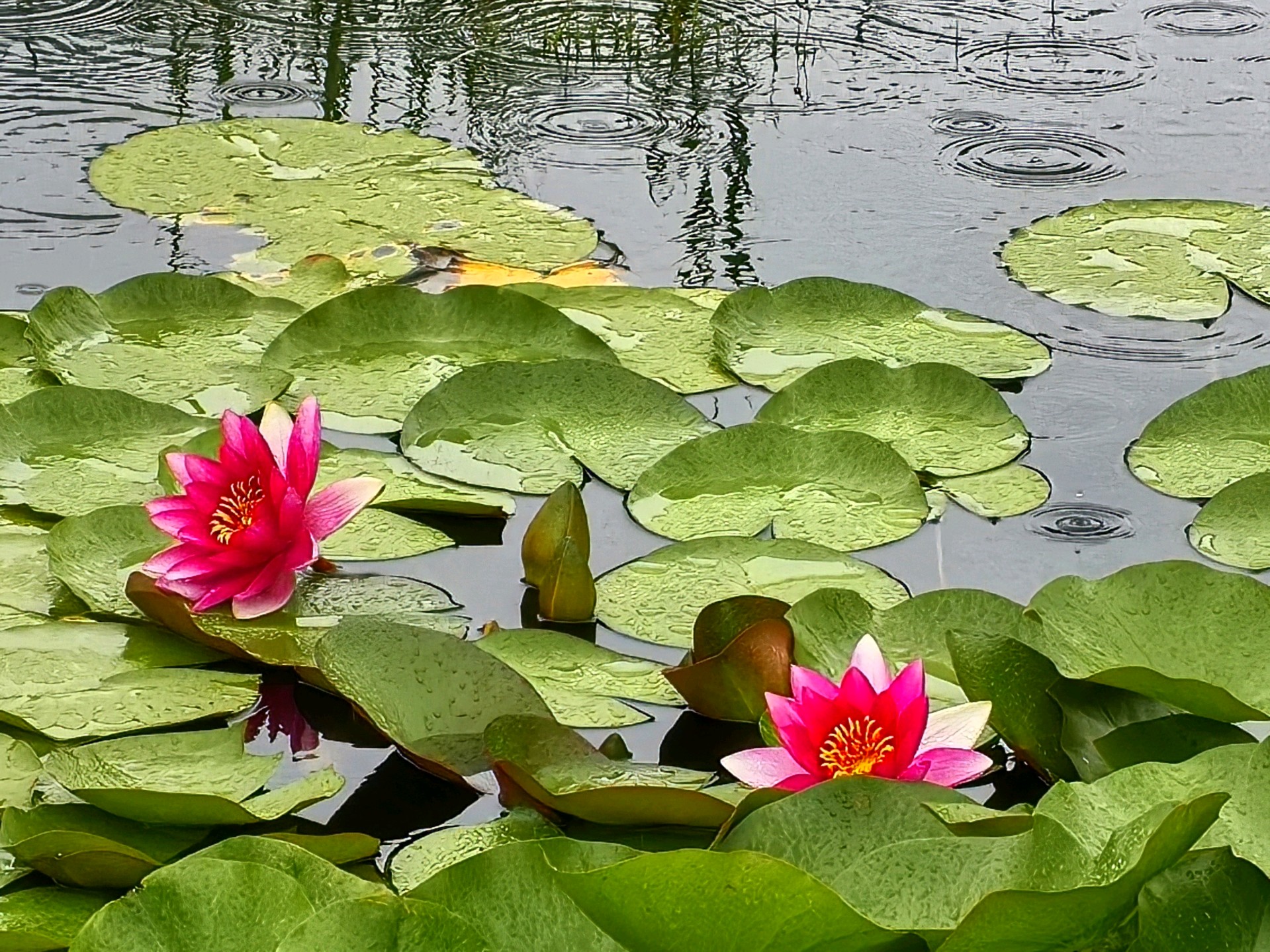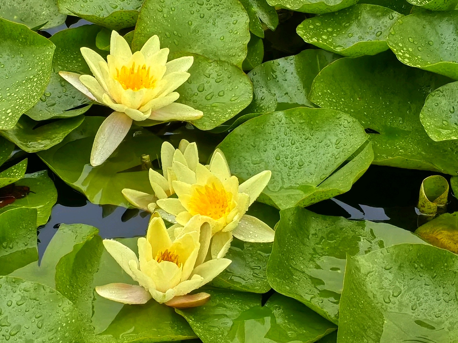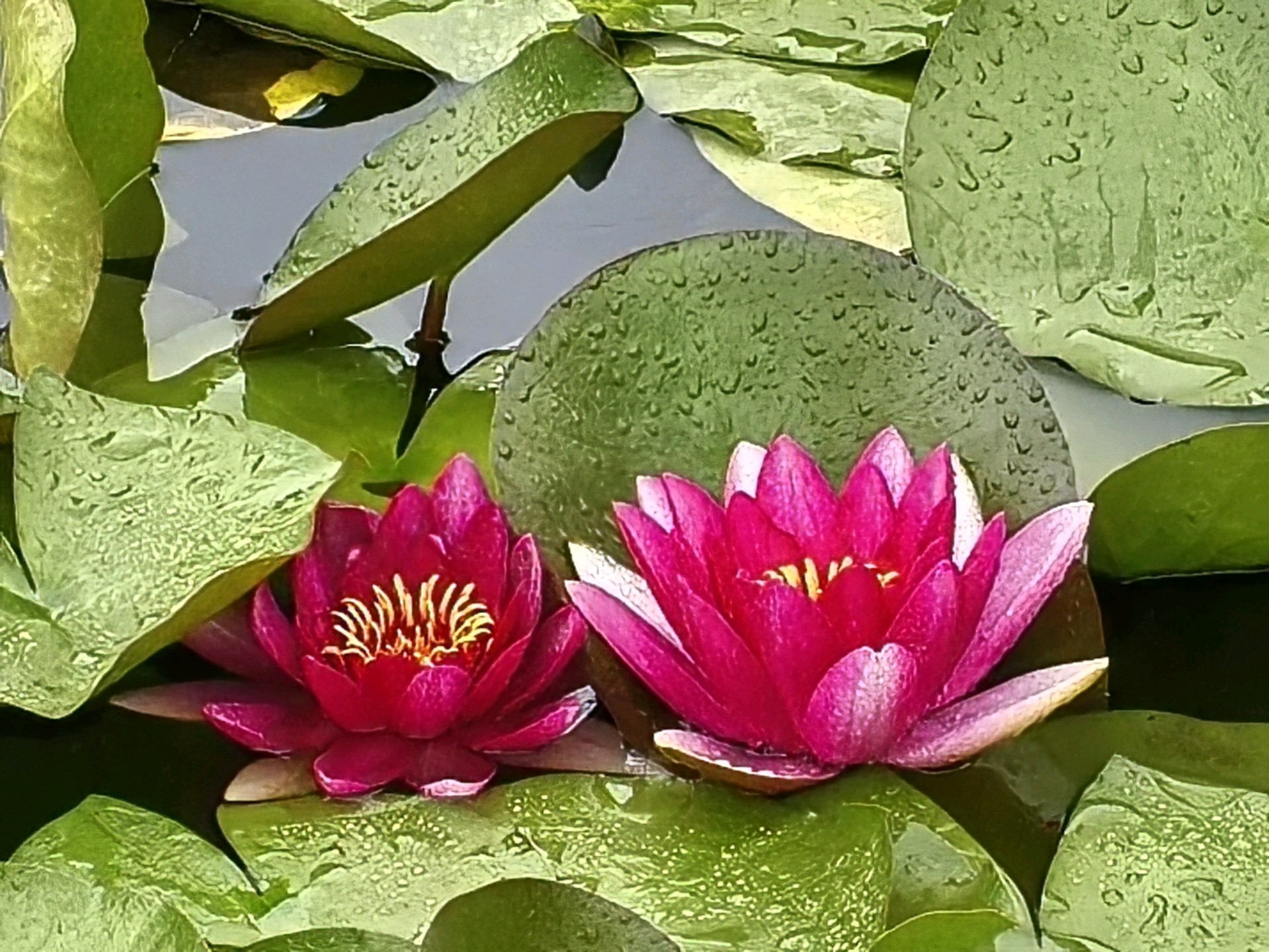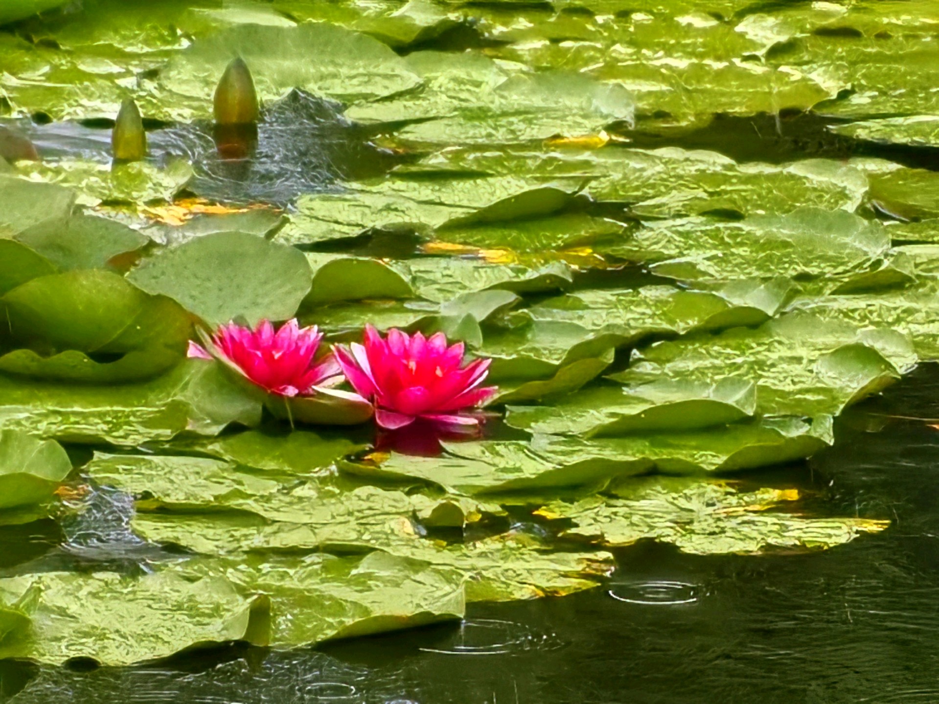 当下睡莲盛开,呈现出一幅美不胜收的夏日画卷。睡莲的花朵小巧玲珑,从密密层层的莲叶中争相钻出水面。它们有的完全舒展花瓣,露出嫩黄的花蕊,在阳光中散发柔和光泽;有的则半开半合,宛如羞涩的少女,犹抱琵琶半遮面。睡莲的颜色丰富多彩,白的淡雅高洁,如不食人间烟火的仙子;粉的娇嫩柔美,似少女娇羞的面庞;黄的明艳动人,像璀璨的阳光洒在水面;红的热烈奔放,仿佛燃烧的火焰。微风拂过,湖面泛起粼粼波光,睡莲也随之轻轻摇曳,仿佛在与河水低语、与清风共舞。偶尔有蜻蜓点水般落在睡莲的花瓣上,为画面增添了一份灵动之美。