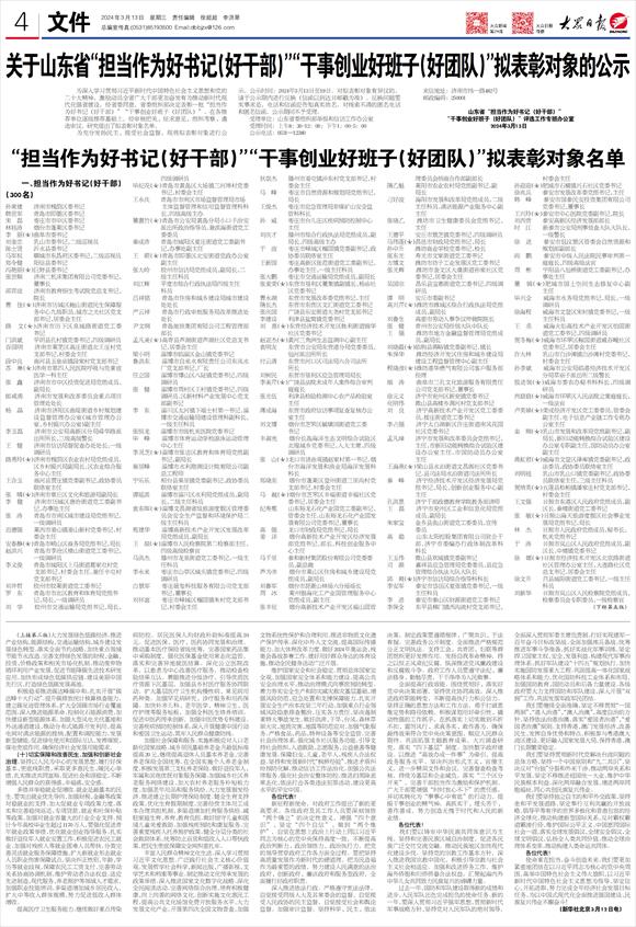 “担当作为好书记(好干部)”“干事创业好班子(好团队)”拟表彰对象名单