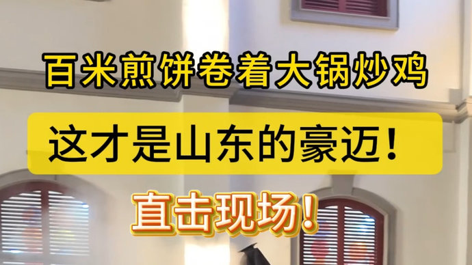 现场直击!百米煎饼卷着大锅炒鸡,这才是山东的豪迈!