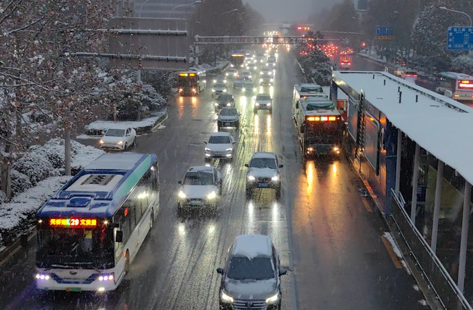 山东济南等地迎今冬初雪,道路结冰黄色预警中