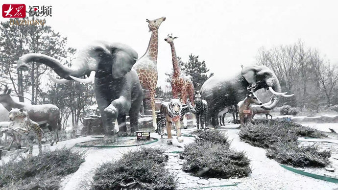 济南初雪来袭!野生动物世界一秒切换“童话皮肤”