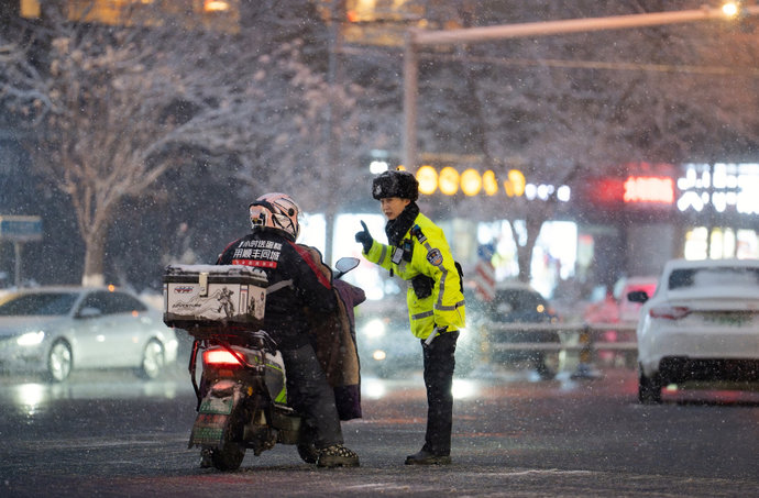 风雪“守护者”上线 德州交警风雪坚守 温暖护航