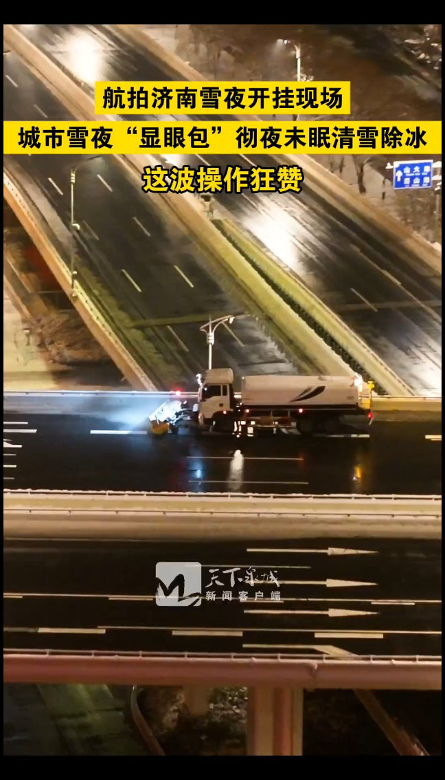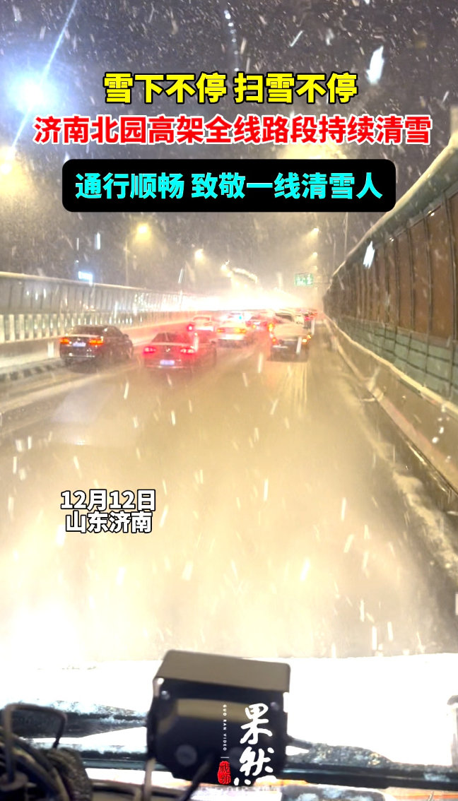 果然视频|致敬一线清雪人!济南北园高架全线路段持续清雪
