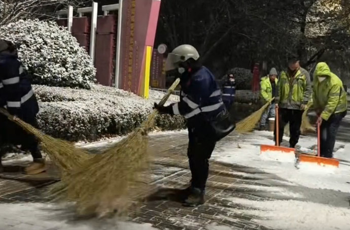 果然视频|济南多个小区物业连夜清雪除冰,保障市民平安出行