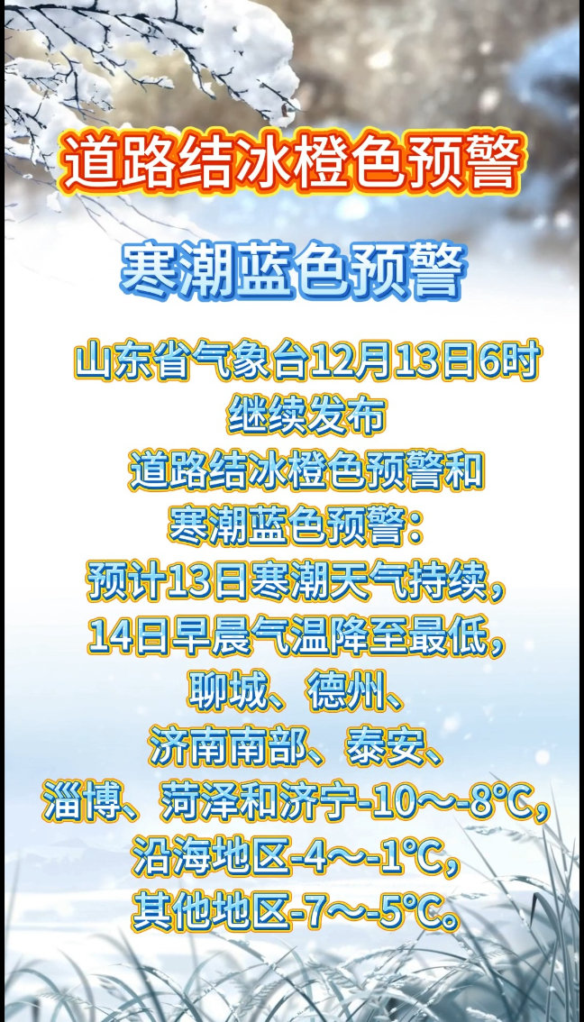 -10℃!山东本轮寒潮最低气温出现在14日早晨 明起气温缓慢回升
