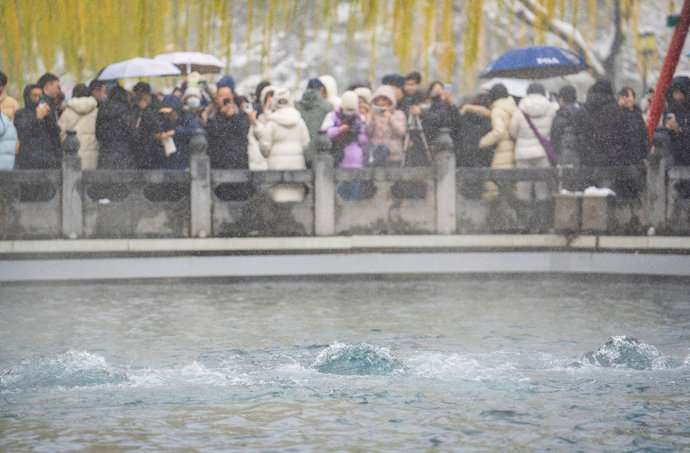 果然视频|雪花纷纷飘落,济南趵突泉解锁初雪“限定”皮肤