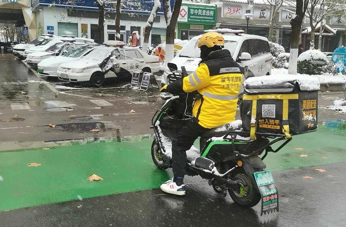 果然视频|风雪无阻,外卖、快递小哥冒雪继续工作