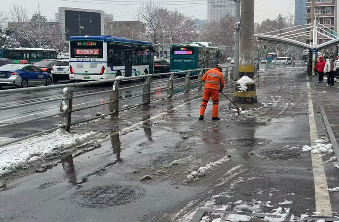 果然视频|全员上岗,济南一环卫所已在清雪一线坚守12小时