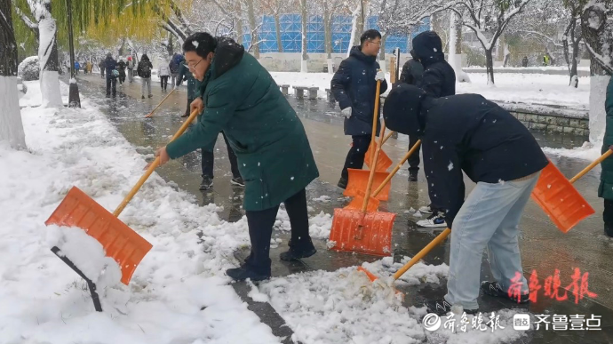 直击淄博降雪|他们,冬雪里一道温暖的风景线