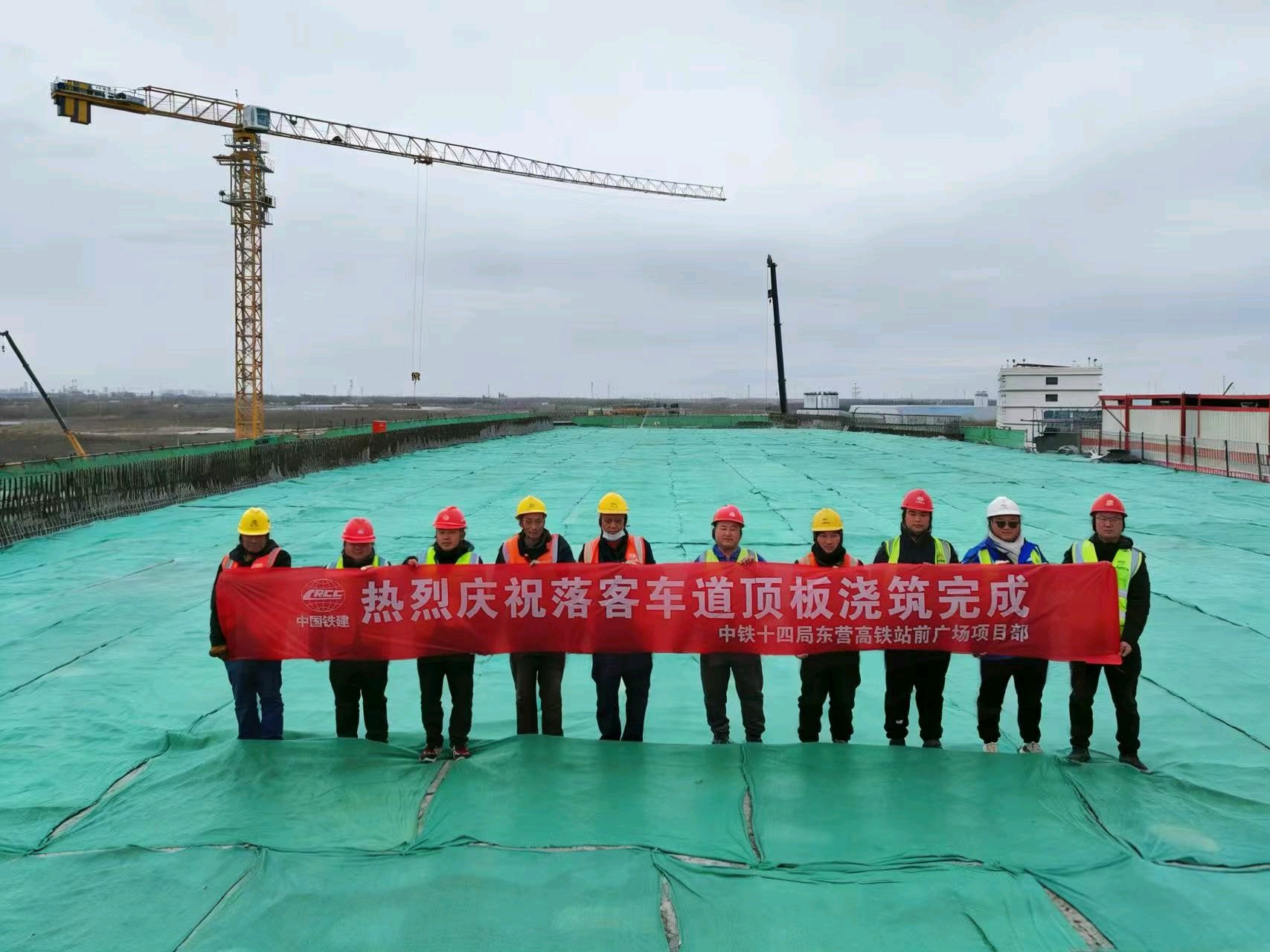 东营高铁站现代综合客运枢纽及配套工程落客车道顶板浇筑完成