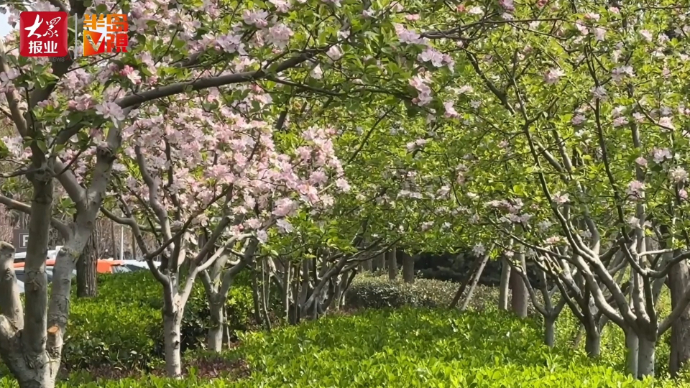 航拍:四月春风吹暖意,满城繁花朵朵开,李村河畔美景如画