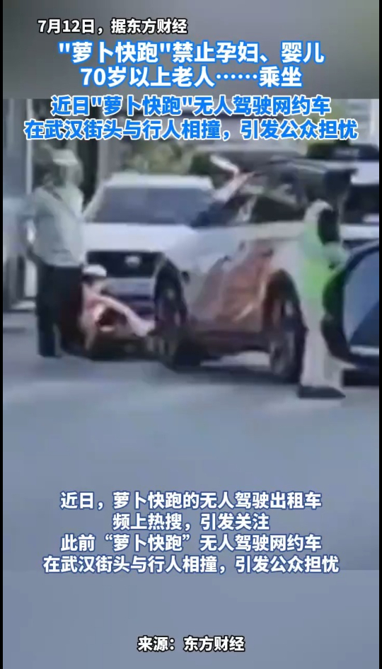 “萝卜快跑”禁止孕妇、婴儿、70岁以上老人乘坐,近日“萝卜快跑”无人驾驶网约车在武汉街头与行人相撞,引发公众担忧