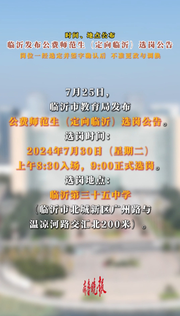 7月25日,临沂市教育局发布公费师范生(定向临沂)选岗公告。
