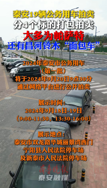 2024年泰安市公务用车(第一批),将于2024年9月20日9点30分,通过网络平台进行公开拍卖。