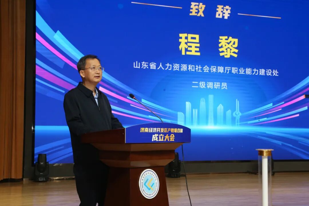 山东省人力资源和社会保障厅职业能力建设处二级调研员程黎在致辞时对联合体的建设提出三点期望:一是紧盯行业发展前沿,打造校企协同育人联合体。要深入推进校企协同育人,统筹智能制造、信息工程等领域优质教育资源,聚焦行业发展需要。二是深化协同机制,建设产教深度衔接联合体。政、校、企、行之间,要实现教育链、人才链与产业链、创新链的有机衔接。三是聚拢产教资源,打造产教融合服务联合体。充分聚拢产教优势,依托市域产教联合体这一关键载体,不断健全完善多元主体的对话交流平台和利益交融机制,打造济南经开区产业人才培养的创新型实体化平台,赋能区域高质量发展。