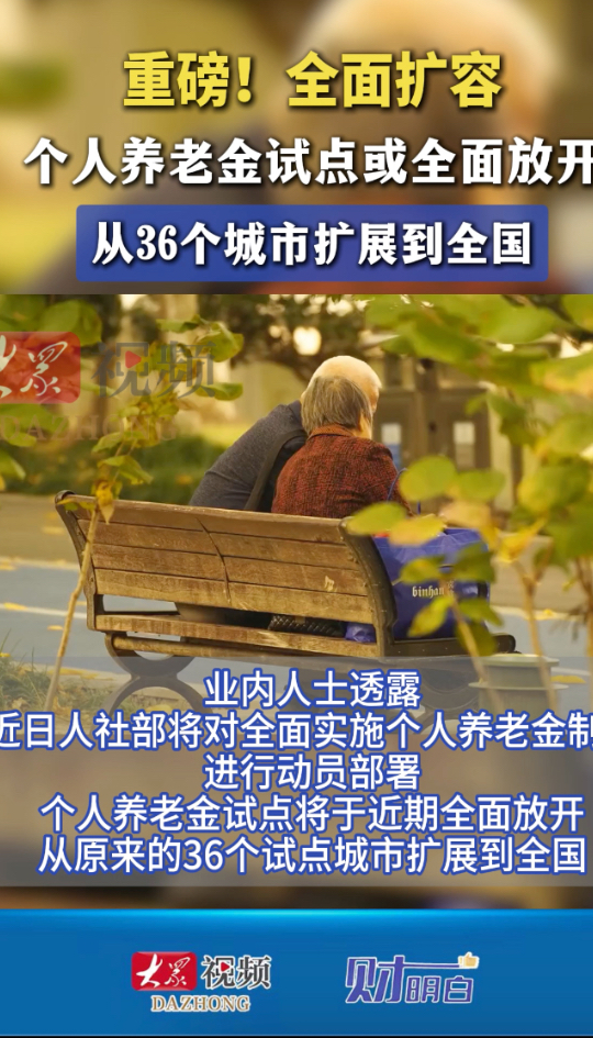 业内人士透露,近日人社部将对全面实施个人养老金制度进行动员部署。个人养老金试点将于近期全面放开,从原来的36个试点城市扩展到全国。