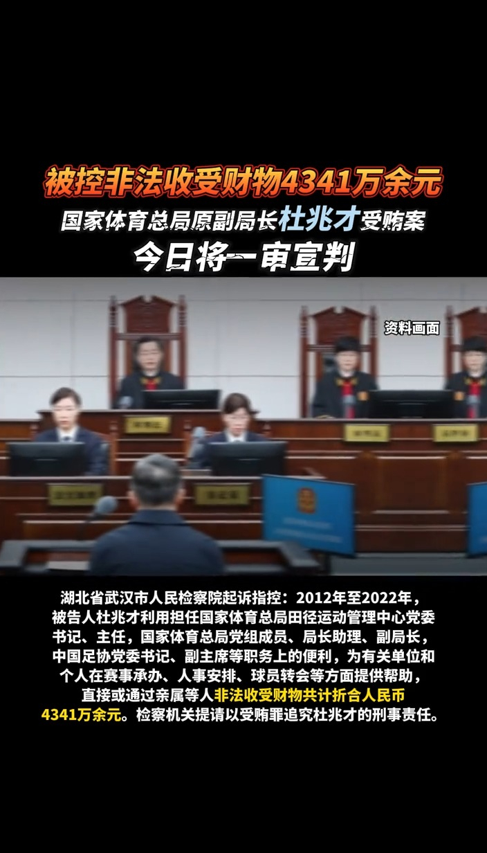 国家体育总局原副局长杜兆才受贿案,今日将一审宣判