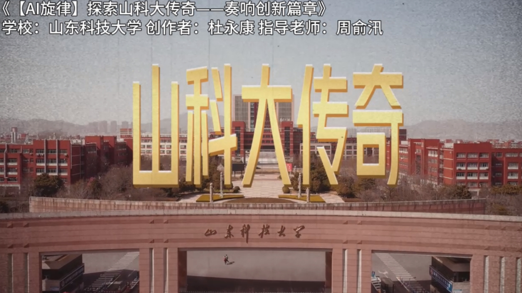 作品:《【AI旋律】探索山科大传奇——奏响创新篇章》学校:山东科技大学 创作者:杜永康 指导老师:周俞汛 本视频是以AI生成的音乐制作的MV,拍摄了山东科技大学青岛、泰安、济南三地校区的美丽景色,展示了山科办校历史、科研实力、学风建设、精神建设等方面。视频趣味十足,更受广大年轻人欢迎,能有效宣传山东科技大学的方方面面。将景色与学风、科研与竞赛、青春与运动结合,展体现了山东高校的“和合之美”。