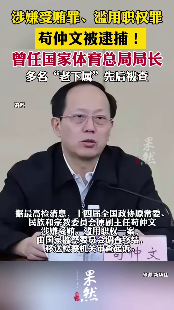 十四届全国政协原常委、民族和宗教委员会原副主任#苟仲文被逮捕