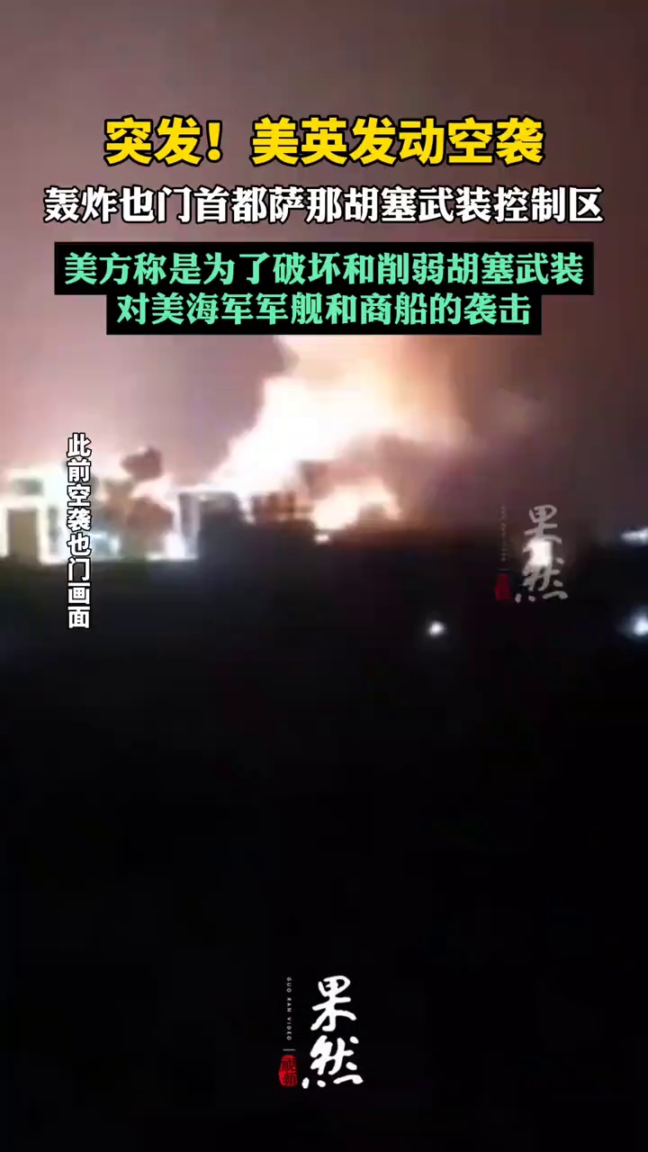 美英对也门首都胡塞武装控制区发动空袭
