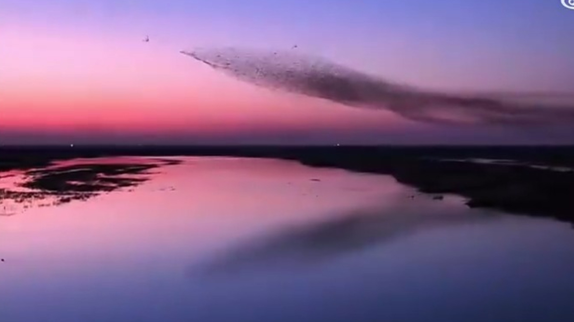 黄河入海口的鸟浪奇观,太壮观了