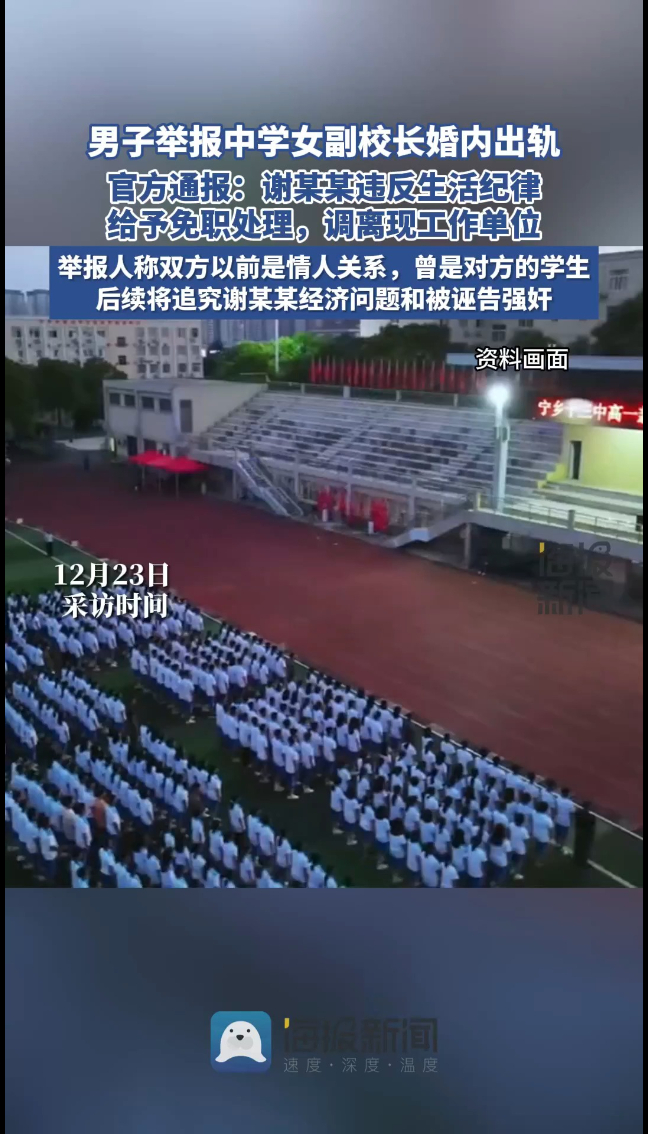 官方通报男子举报中学女副校长婚内出轨:谢某某违反生活纪律,被免职调离