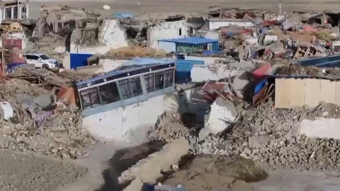 震区最新航拍画面 西藏定日县地震救援正在进行