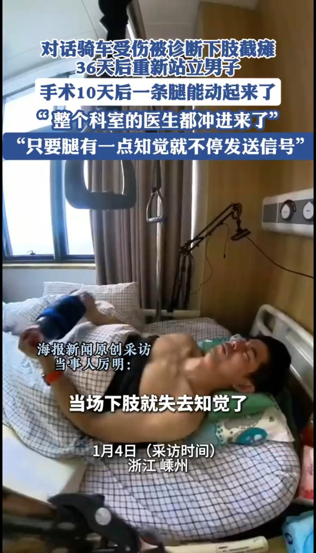 男子骑车受伤被诊断为下肢截瘫,手术10天后一条腿能动起来了,“ 整个科室的医生都冲进来了”