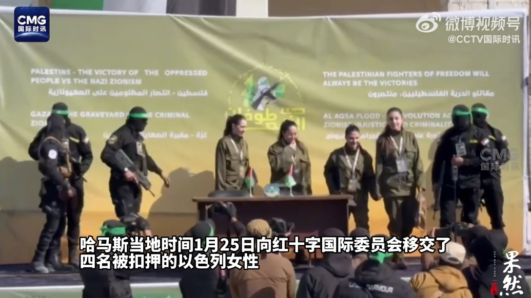 果然视频·看天下|现场画面曝光,哈马斯再释放4名被扣押人员 2025-01-26 原创齐鲁晚报·齐鲁壹点客户端 微信扫码扫码下载客户端巴勒斯坦伊斯兰抵抗运动(哈马斯)当地时间1月25日在加沙地带北部加沙城的“巴勒斯坦”广场向红十字国际委员会移交了四名被扣押的以色列女性。这是加沙停火协议生效后,哈马斯释放的第二批被扣押人员。