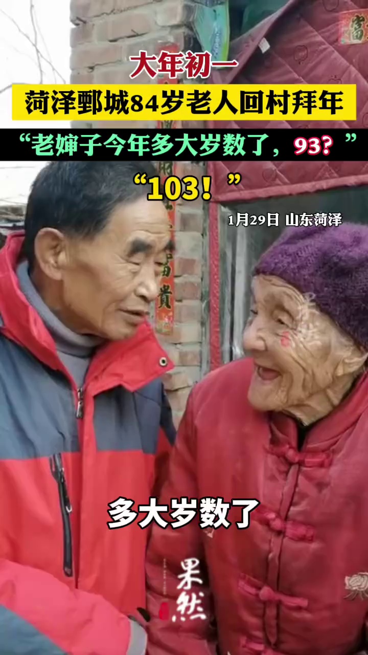 84岁老人回村给103岁婶子拜年