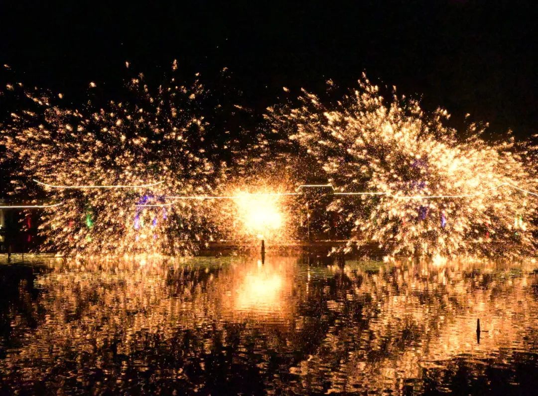 夜幕降临,打铁花和水幕电影闪亮登场,为游客们带来一系列震撼的视觉盛宴,这 “声光特效”,简直绝绝子!