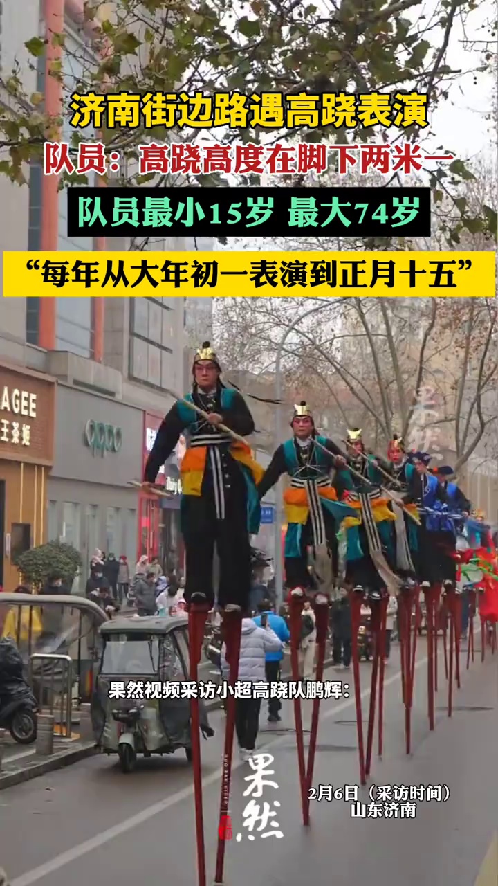济南街边高跷表演年味十足@小超高跷队-鹏辉