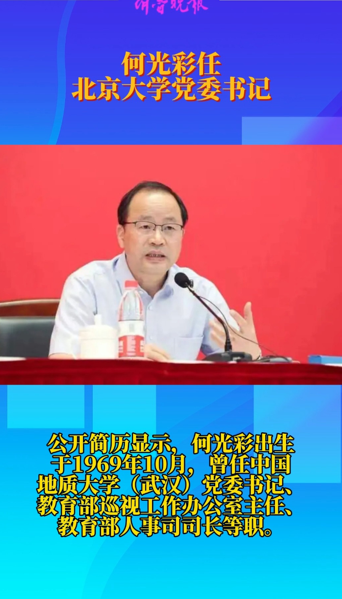 观政视频|何光彩任北京大学党委书记,此前任教育部副部长 2025-02-14 原创齐鲁晚报·齐鲁壹点客户端 微信扫码扫码下载客户端据教育部网站消息,日前,中央批准:何光彩同志任北京大学党委书记;郝平同志不再担任北京大学党委书记职务。