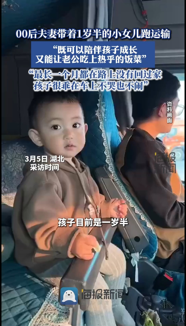 00后夫妻带着1岁半的小女儿跑运输:“既可以陪伴孩子成长,又能让老公吃上热乎的饭菜”
