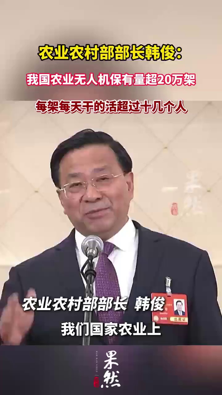 农业农村部部长韩俊:我国农业无人机保有量超20万架