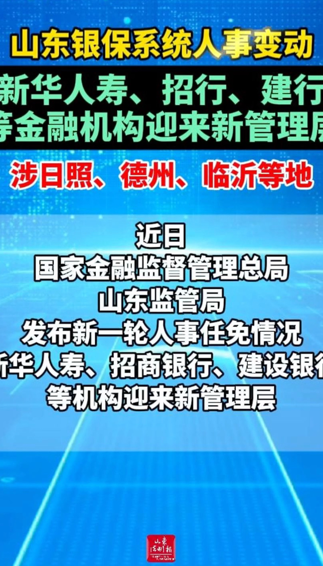 近日,国家金融监督管理总局山东监管局发布新一轮人事任免情况。多地新华人寿、招商银行、建设银行等分公司及支公司迎来新管理层。