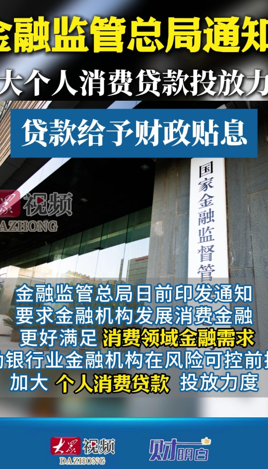 财明白|金融监管总局通知!加大个人消费贷款投放力度