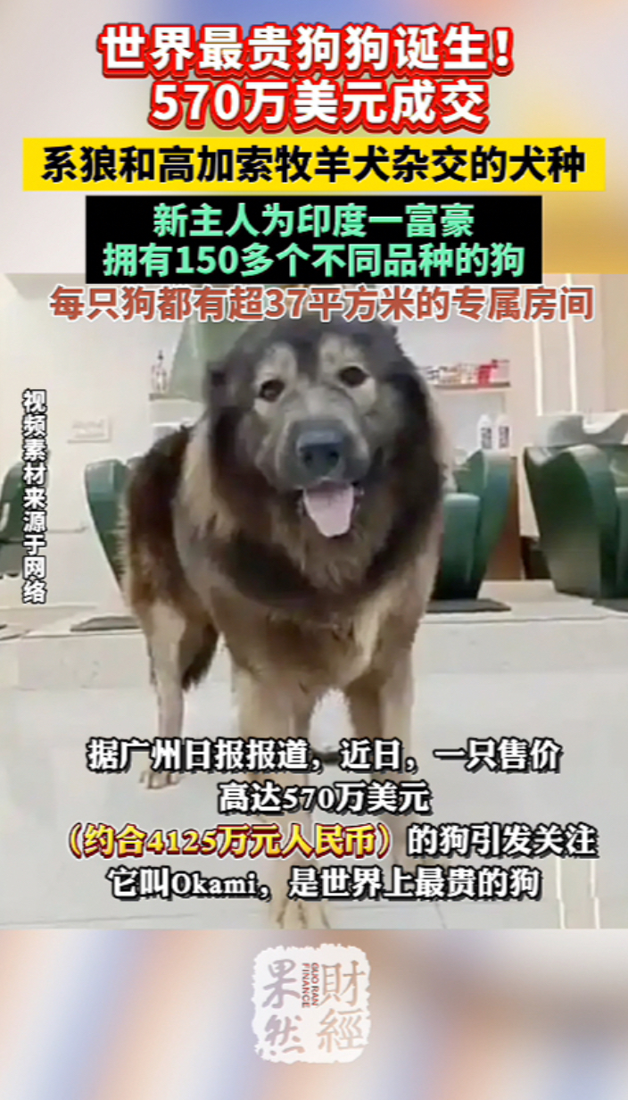 果然财经|世界最贵狗诞生,570万美元成交!新主人为印度富豪