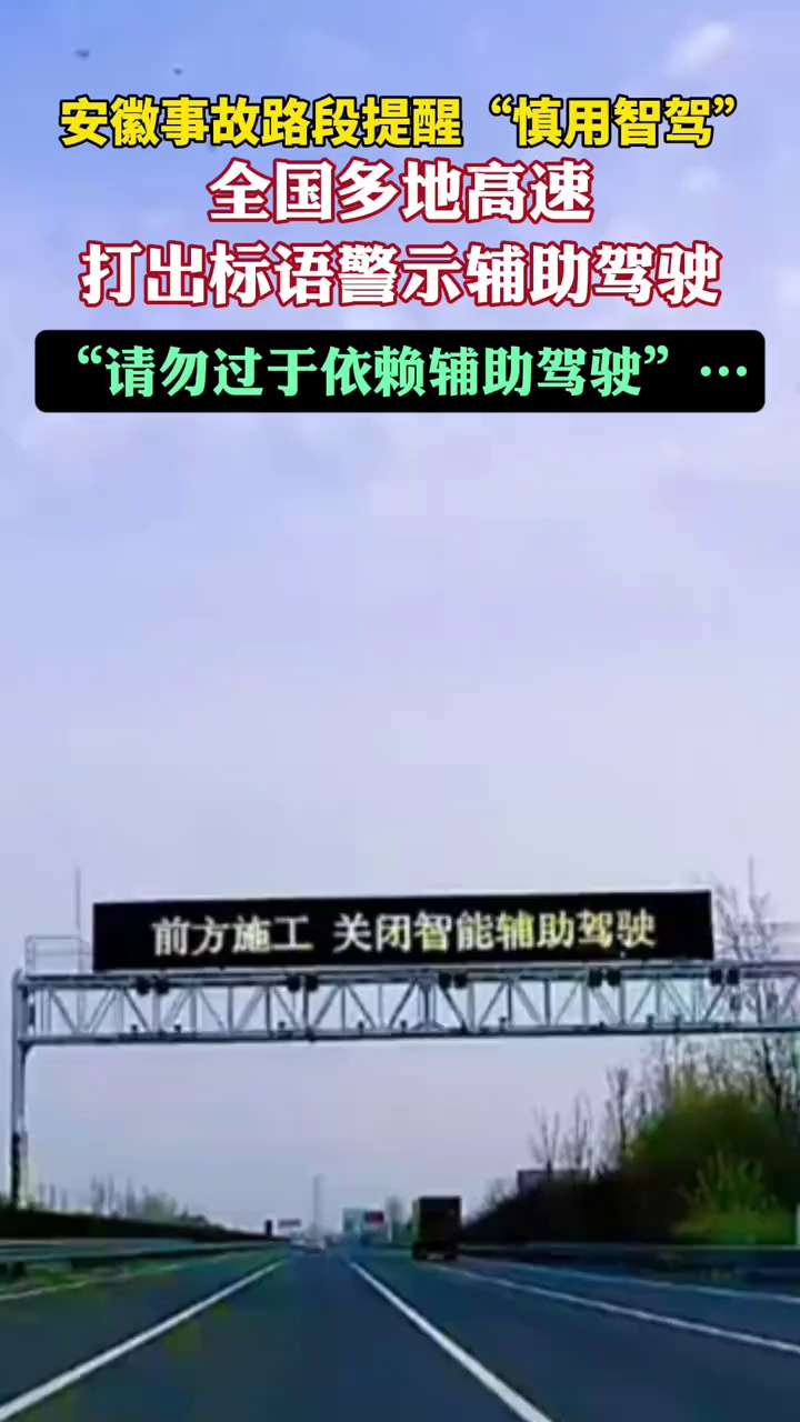 全国多地高速提醒“慎用智驾”。(现代快报)