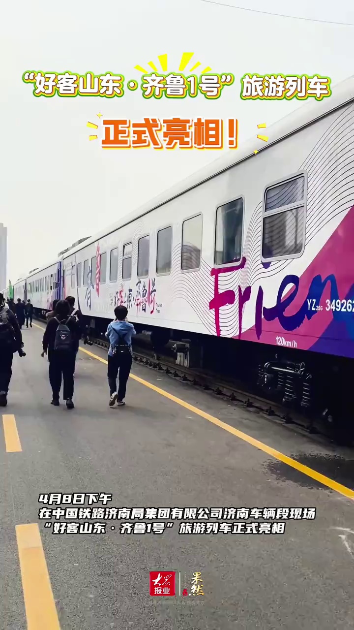 “好客山东·齐鲁1号”车厢里什么样?记者带你一探究竟 4月8日下午,“好客山东·齐鲁1号”旅游列车在济南正式亮相。记者走进车厢发现,车厢内部以“好客山东·齐鲁1号”logo的蓝紫色和玫红色为主,列车上还装饰有山东各地文旅资源的推介展示牌。如德州乐陵影视城,德州扒鸡、杂技等
