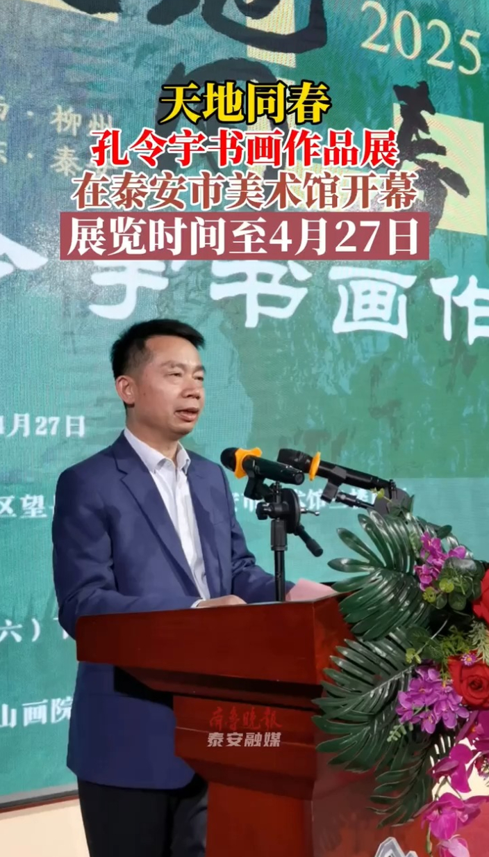 4月12日下午,“天地同春——孔令宇书画作品展”在泰安市美术馆(泰山画院)顺利开幕。