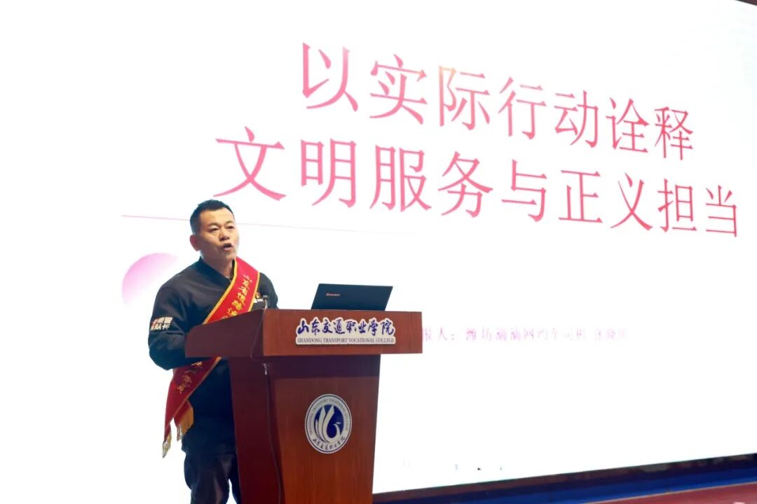 四月的交职院风光旖旎,奋进的交通人步履铿锵。4月14日,“凝心铸魂 齐心筑梦”全省劳模工匠示范宣讲暨全省交通运输系统“致敬身边的榜样”宣讲、“山东交通职工大思政课”启动活动在我校举办。山东省交通运输厅二级巡视员、厅总工程师赵方德,省交通工会主席、一级调研员牟艳红,潍坊市交通运输局二级调研员、潍坊市交通工会主席岳同霞,省交通运输厅政策研究室副主任卜一,2024年度山东交通大工匠、山东交通工匠代表,交通运输新业态劳动者代表、基层一线职工代表、新闻媒体朋友及学校师生代表齐聚凤凰山,共同谱就一曲匠心与传承的奋斗诗篇。活动由学校党委书记王心主持。