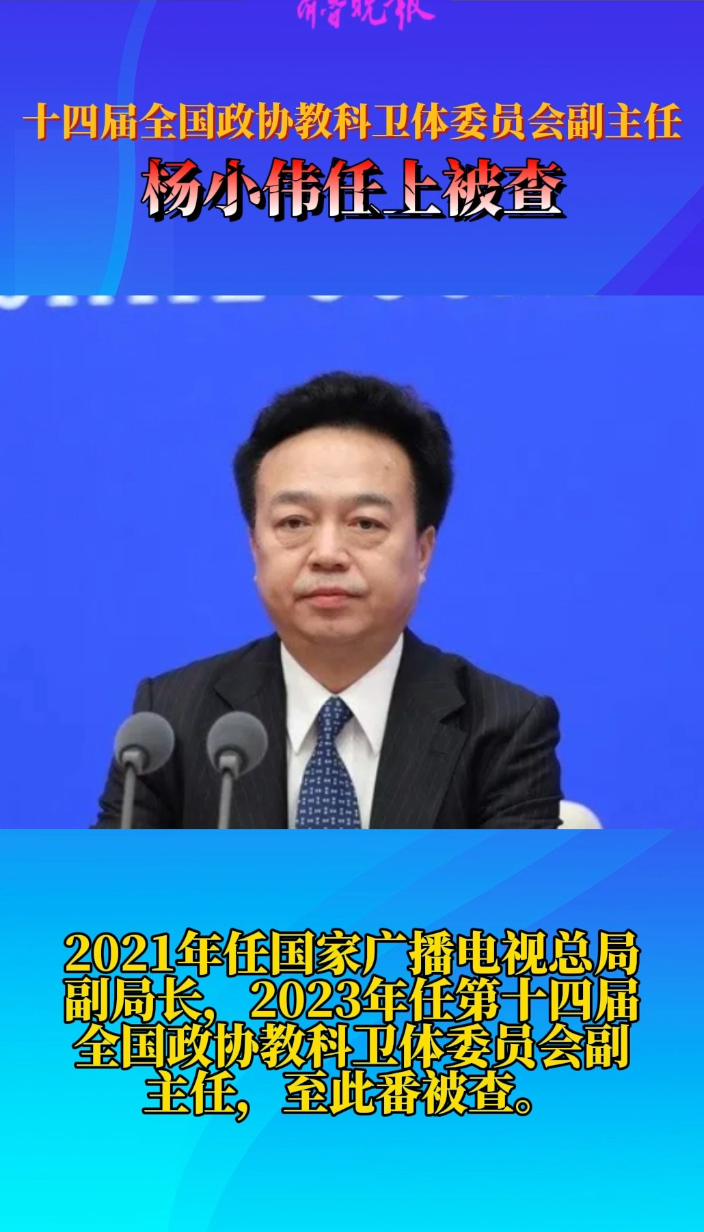 观政视频|打虎!杨小伟任上被查 2025-04-17 原创齐鲁晚报·齐鲁壹点客户端 微信扫码扫码下载客户端中央纪委国家监委网站4月17日消息,十四届全国政协教科卫体委员会副主任杨小伟涉嫌严重违纪违法,目前正接受中央纪委国家监委纪律审查和监察调查。