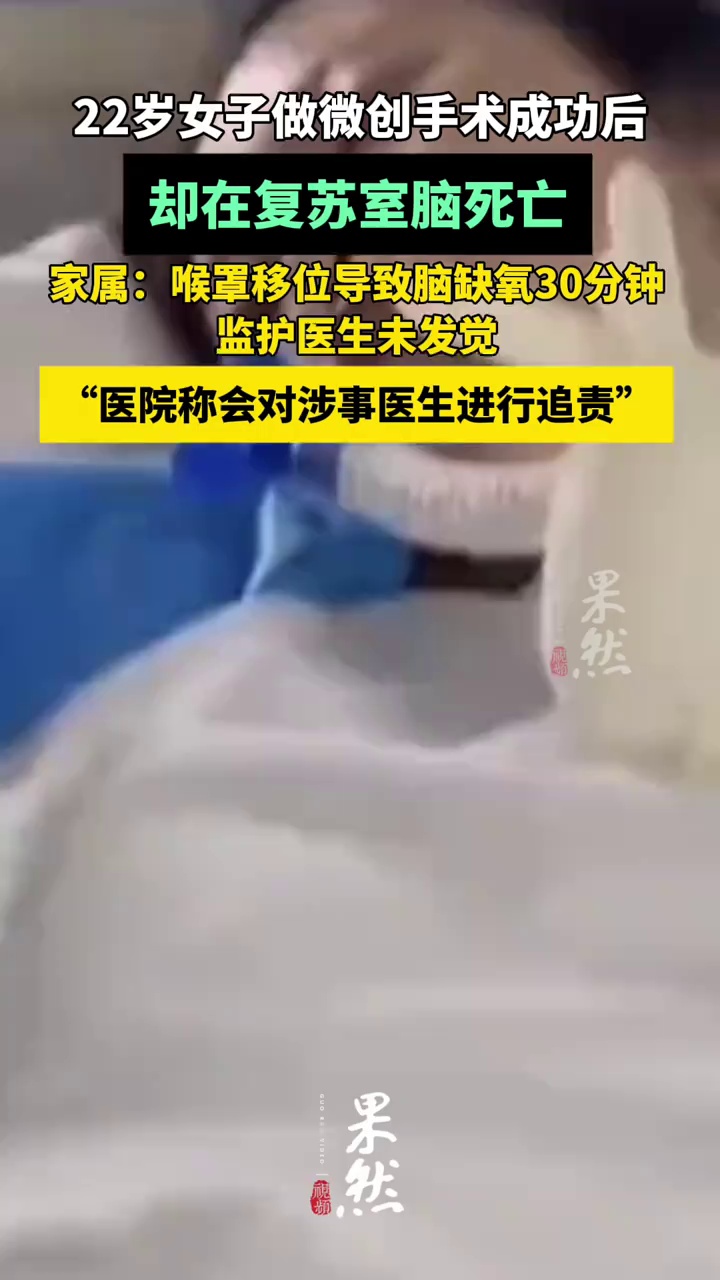 22岁女子手术成功后脑死亡,家属:缺氧30分钟医生未发觉(大河报)