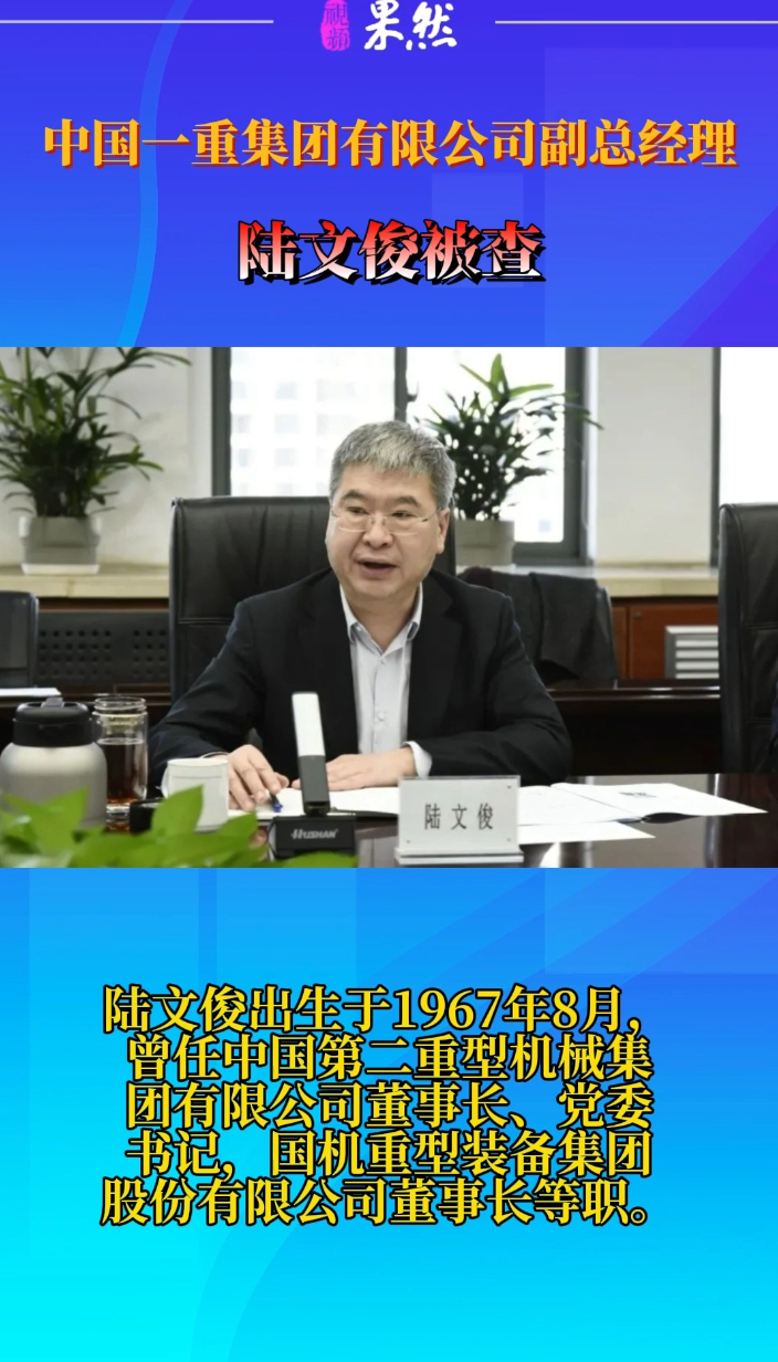 观政视频|打虎!中国一重集团有限公司副总经理陆文俊被查 2025-05-10 原创齐鲁晚报·齐鲁壹点客户端 微信扫码扫码下载客户端中央纪委国家监委网站5月9日消息,中国一重集团有限公司党委常委、副总经理陆文俊涉嫌严重违纪违法,目前正接受中央纪委国家监委纪律审查和监察调查。