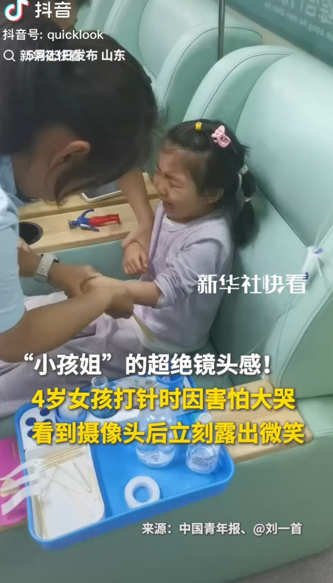 超绝镜头感!4岁女孩打针害怕大哭,看到镜头后立刻微笑