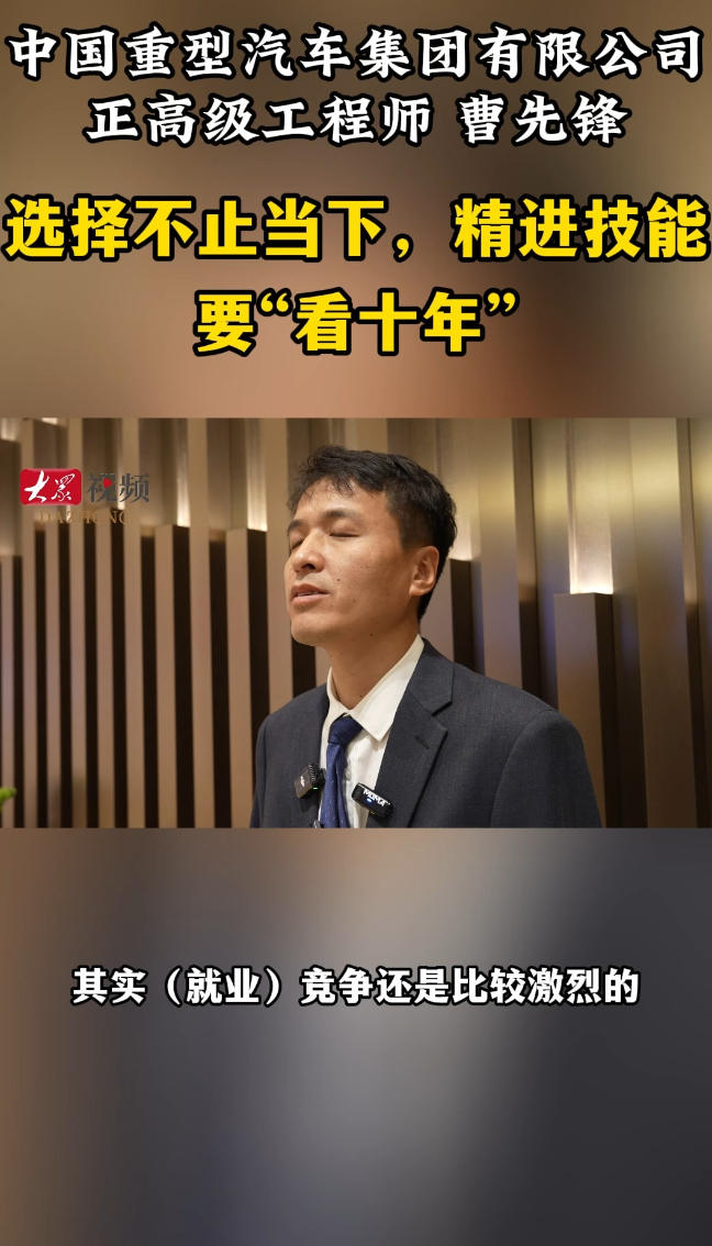 曹先锋:眼光放长远,要看“十年”大众新闻 06-27原创6月26日上午,山东省人民政府新闻办公室举行“矢志创新发展 建设科技强省”科技工作者系列记者见面会第二场,邀请4位科技工作者代表,围绕“踔厉创新护航国计民生”主题与记者见面交流。对于年轻人的未来规划,中国重型汽车集团有限公司正高级工程师曹先锋建议年轻人眼光放长远,要“看十年”。(大众新闻记者 张焕辰)