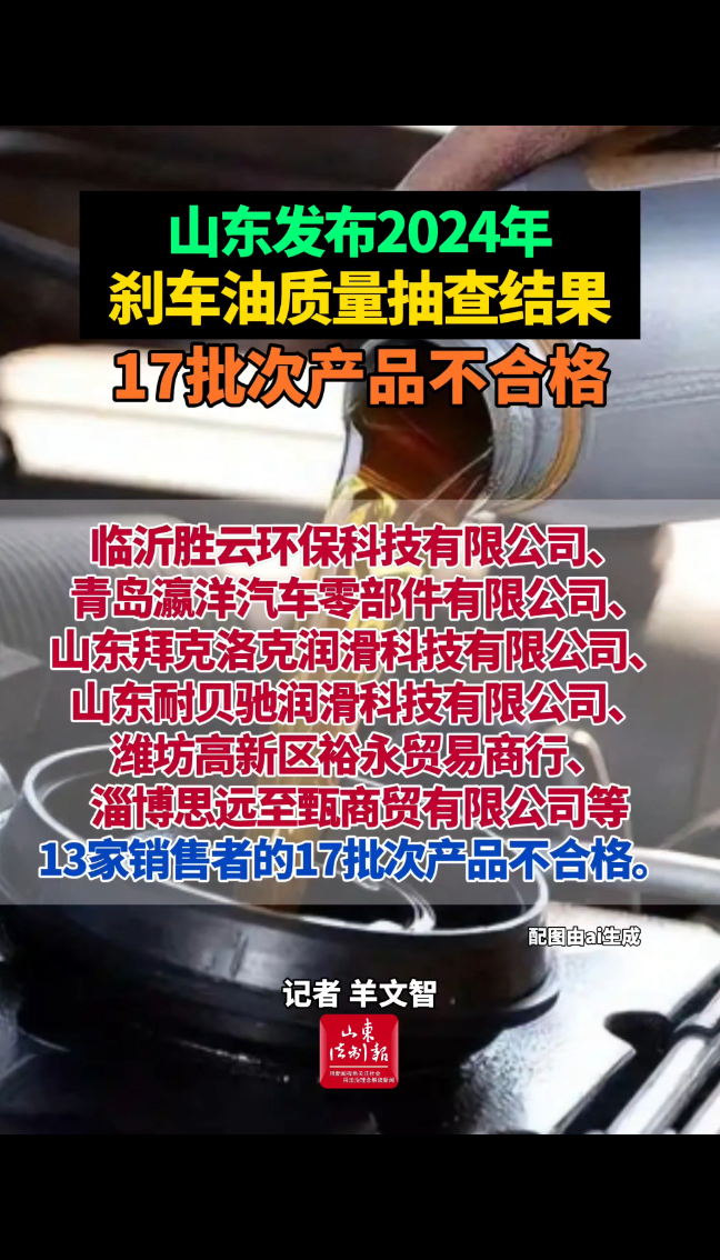 山东发布2024年刹车油质量抽查结果,17批次产品不合格